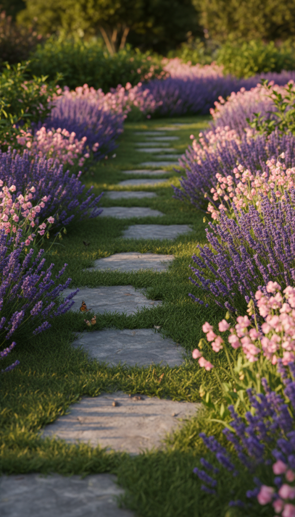 Have you ever walked into a garden and felt like you were being gently guided by blooms? Flower pathways do exactly that. Use stepping stones flanked by low flowers like lavender or sweet peas for a whimsical walk through your backyard.