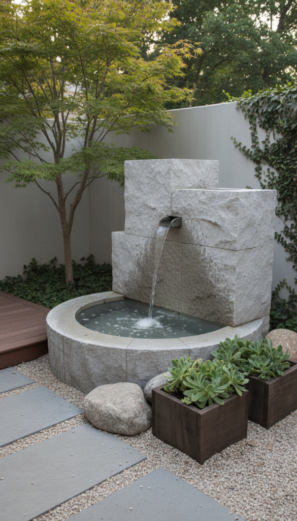 Choose a compact fountain for small garden decor or a sleek basin feature for larger spaces. Keep surrounding elements minimal so the water becomes the focal point. Natural stone finishes elevate the look.