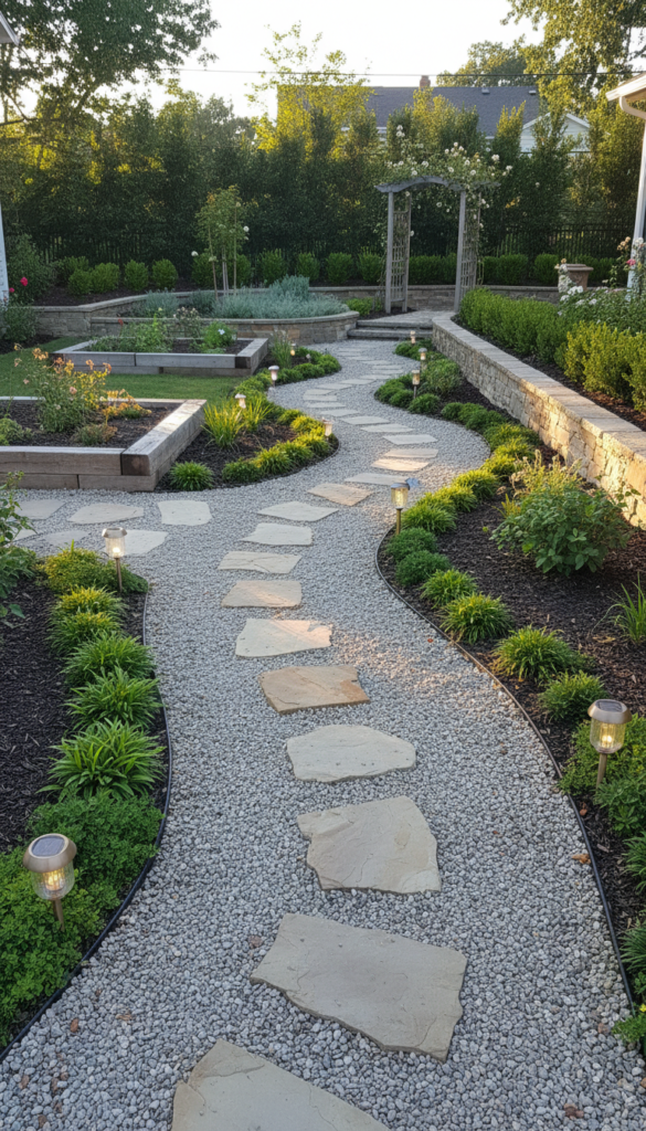 Use stepping stones, gravel, or brick to define movement. Curve the pathway slightly for a softer, more natural look. Line edges with low greenery or subtle solar lights for polish.