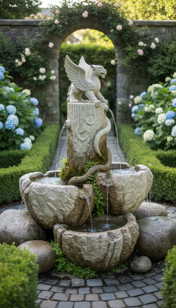 For those who want their garden decor to look expensive, a hand-carved stone sculpture fountain does just that. Whether it’s a figure, abstract shape, or classic millstone look, this fountain doubles as art and water feature. Natural stone varieties age beautifully, gaining character over time. Position it next to shaded seating or near pathways where guests will pause and admire. Pick this if you want your outdoor space to feel curated and timeless. (Reddit)