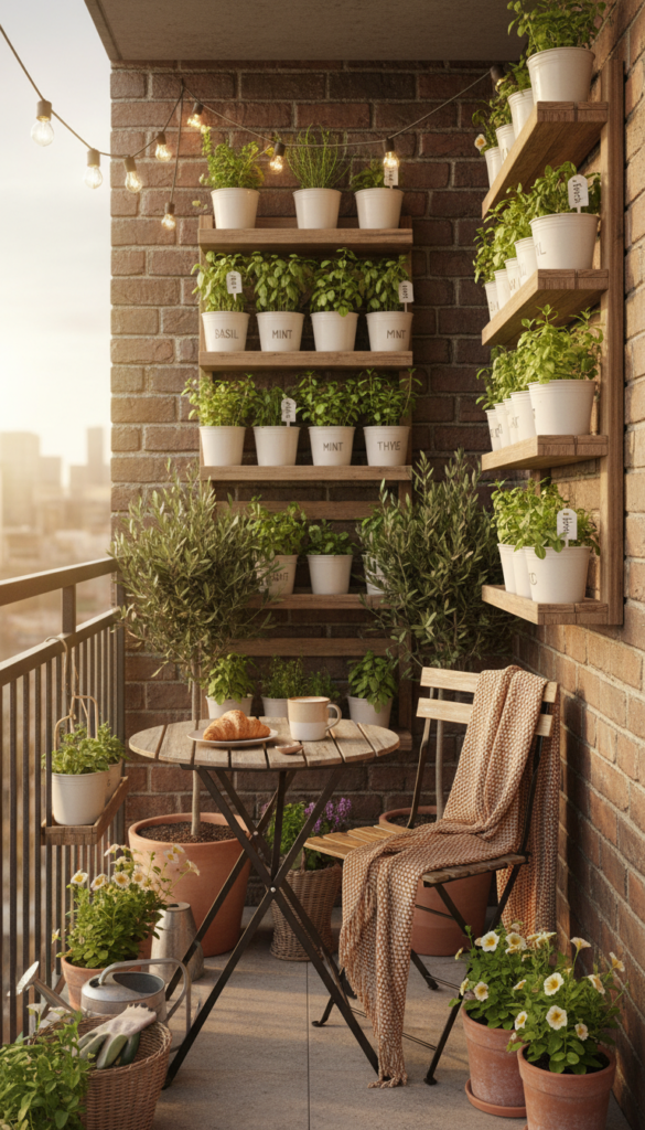 People love herb balconies because they combine beauty with practicality. Fresh leaves straight from your balcony just hit differently.