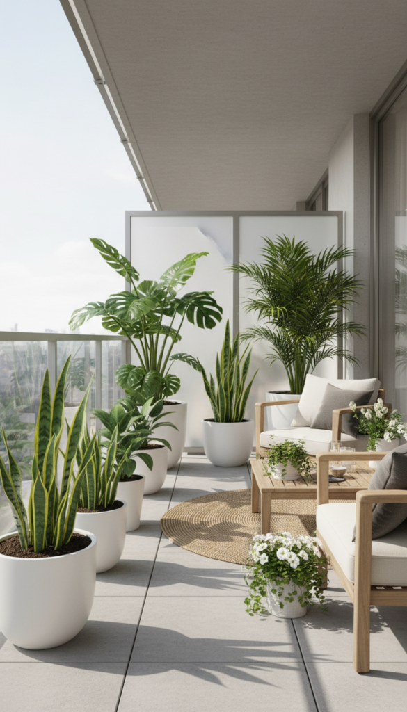 Sometimes your balcony does not need excitement. It needs peace. A Zen-inspired setup focuses on simplicity, balance, and calm energy. It is perfect if you want your outdoor space to feel like a mental reset button.