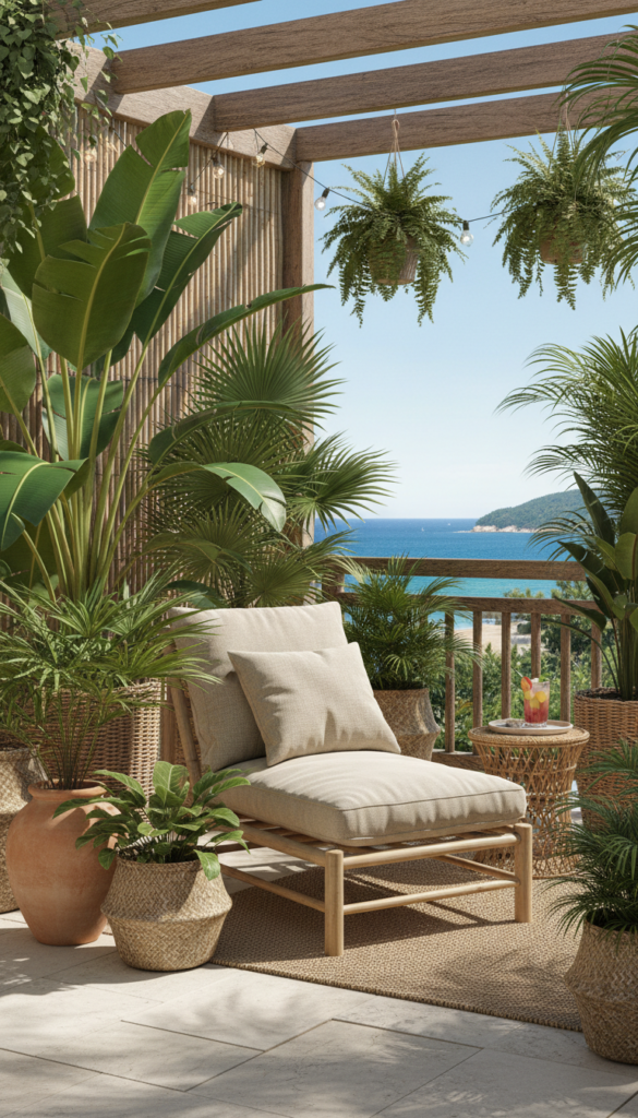People love tropical balconies because they feel like a holiday at home. It is one of those garden decor ideas that lifts your mood instantly and makes everyday life feel a little more exciting.