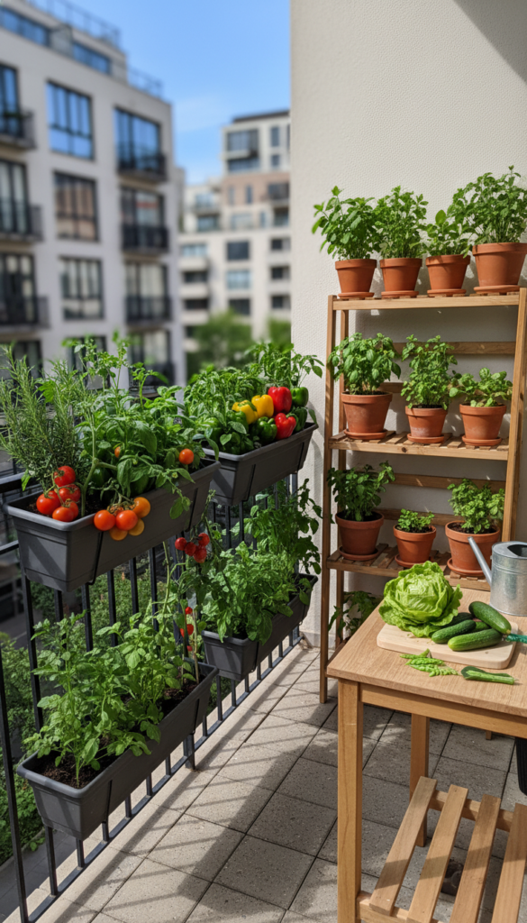 People love this setup because it turns even the tiniest balcony into a living kitchen garden that feels practical and stylish at the same time.