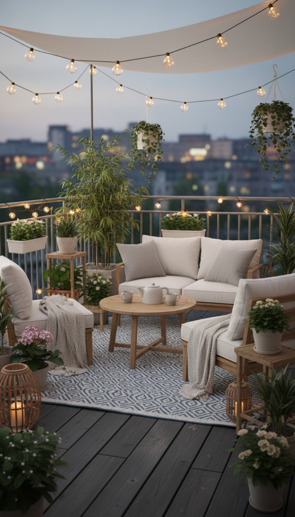 Pair this with cozy seating and cushions and suddenly your balcony becomes your favorite spot after sunset. It feels intimate and calm without needing much effort.