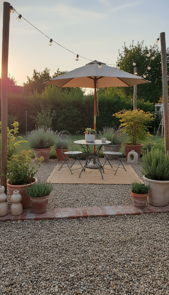 Use pea gravel or crushed stone in a defined square or circle. Add simple edging with bricks or metal strips so it looks planned. Drop in a bistro table or lounge chair and suddenly you have a patio.