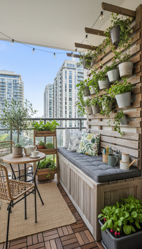 Storage does not have to be ugly. Benches with storage or shelves that hold both plants and essentials keep balconies tidy. This approach is trending because people want beauty and function together.