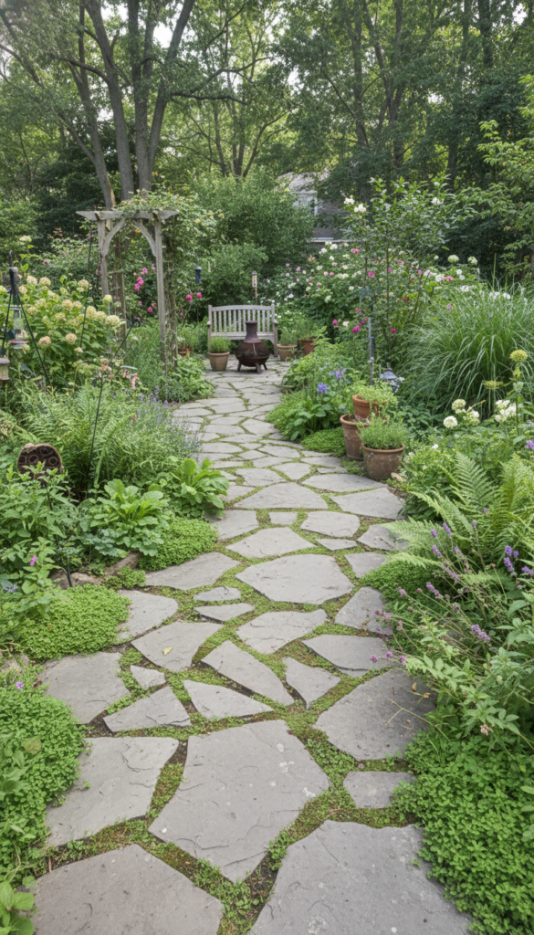 Stone pathways guide the eye and the flow of the yard. They make even simple garden decor ideas feel thoughtful.