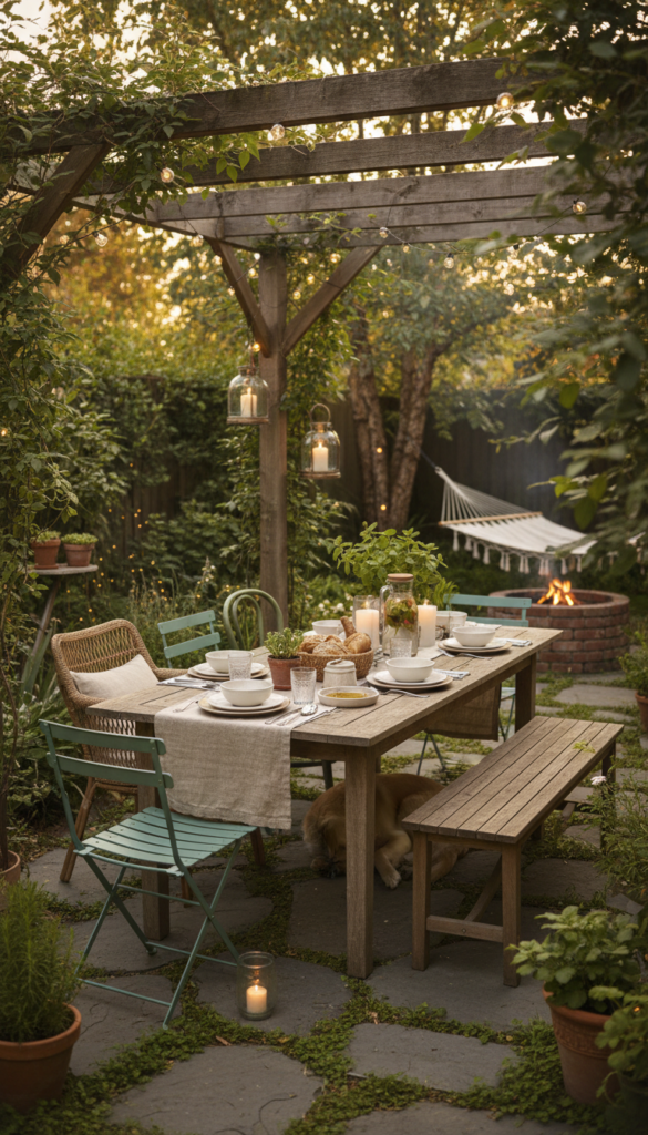 People love this because it works for everyday meals and gatherings. It’s one of those garden decor ideas that actually gets used.