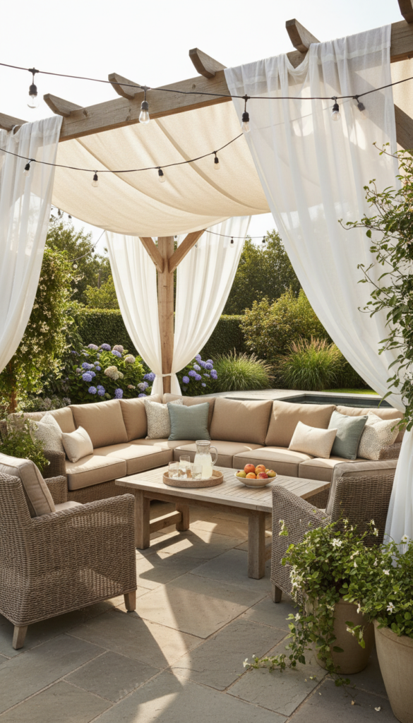 This works because it instantly upgrades patio decor without buying new furniture. People love how cozy it feels and how easily it adapts to different garden decor ideas.