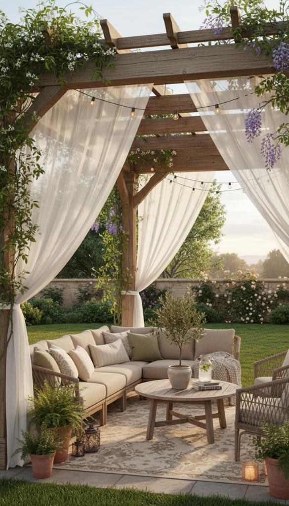 Pergolas define outdoor spaces like nothing else. Even a simple DIY version creates structure and shade. Why sit in full sun when you can lounge?