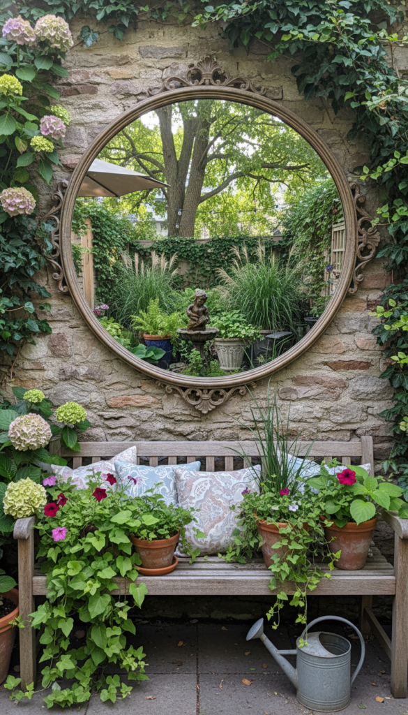 Mirrors in gardens feel a little magical. They bounce light and make small spaces feel bigger. Is it a trick? Yes. Does it work? Absolutely.