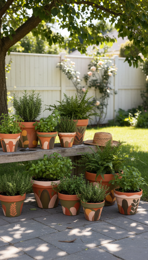 Plain terra cotta pots are fine, but painted ones feel personal. This is one of those garden decor ideas that looks high effort but takes one afternoon. Who does not love that?