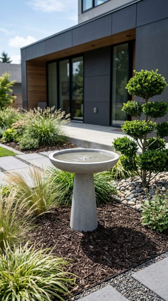 If your style leans modern, go for a sleek concrete bird bath with clean lines.