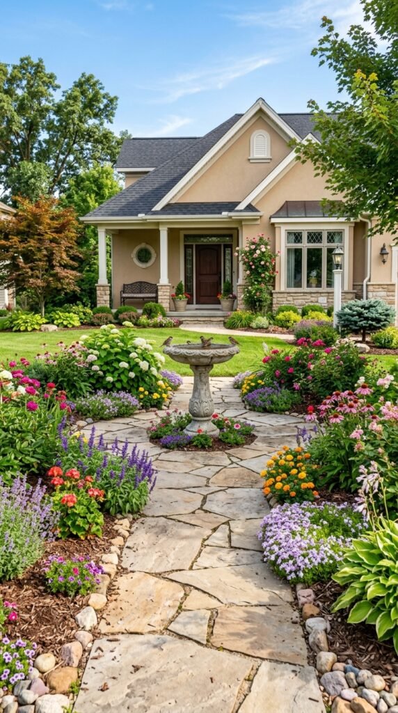 The best part? Most of these front yard bird bath garden ideas are weekend projects. A little gravel. Some flowers. Maybe a solar fountain. Suddenly your home looks intentional and welcoming.