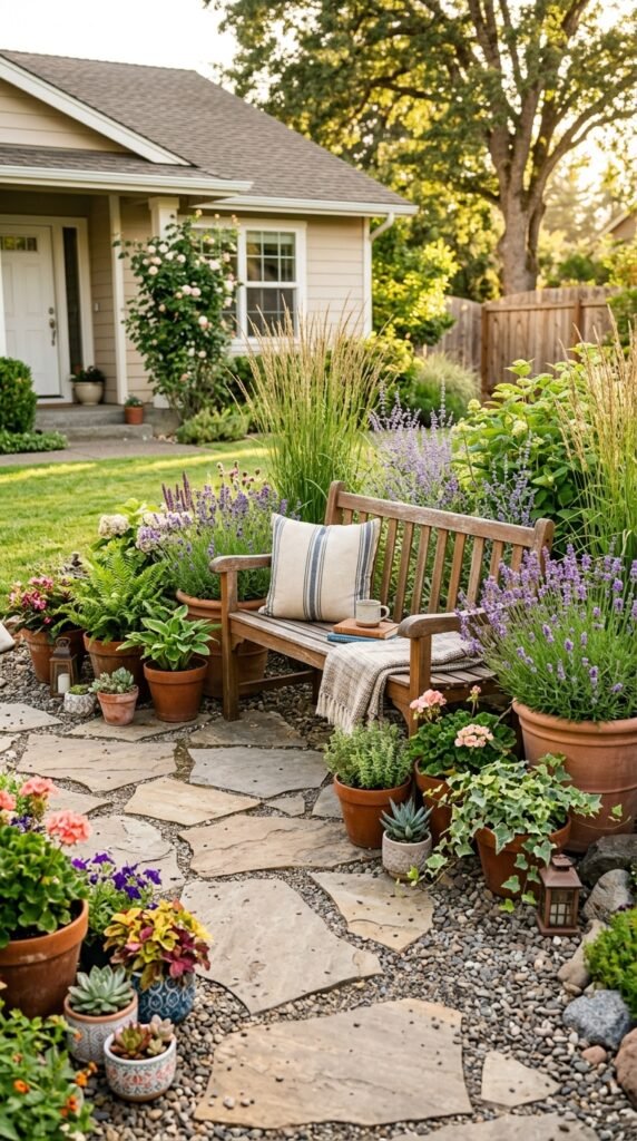 Garden decor is not just about plants. It is about creating little outdoor moments you actually enjoy spending time in. A peaceful bench, glowing lanterns, or even a tiny herb garden can make your front yard feel alive.