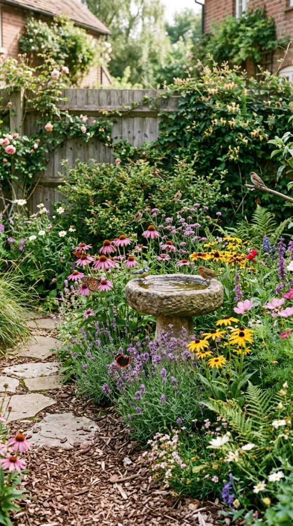 The corner becomes a lively ecosystem instead of just decoration. Watching birds visit your garden never gets old.