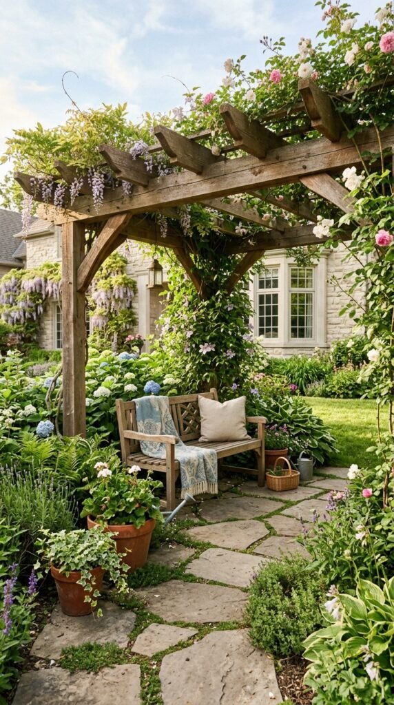 A small pergola instantly adds structure and shade.