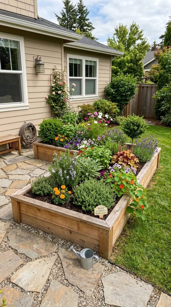 Fill the bed with seasonal flowers, herbs, or small shrubs depending on what you love growing. Raised beds also improve soil drainage and make gardening easier.
