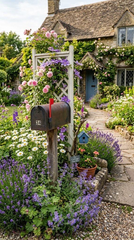 You can even add a small trellis behind the mailbox with climbing flowers. Suddenly the mailbox looks intentional instead of random.
