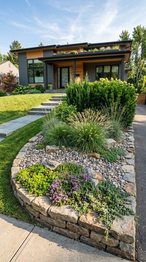 This idea works especially well in sloped yards. It prevents soil erosion and looks intentional. It is practical and stylish. That combo never fails.