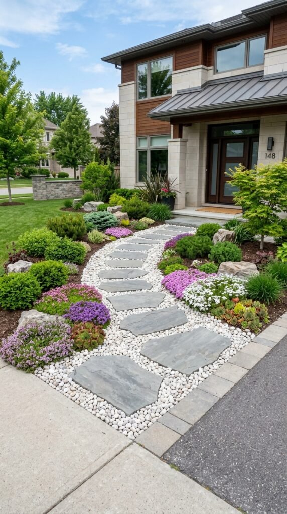 This garden decor idea feels peaceful and structured. It suits smaller front yards and gives serious calming energy. And honestly, who does not want that before starting the day?