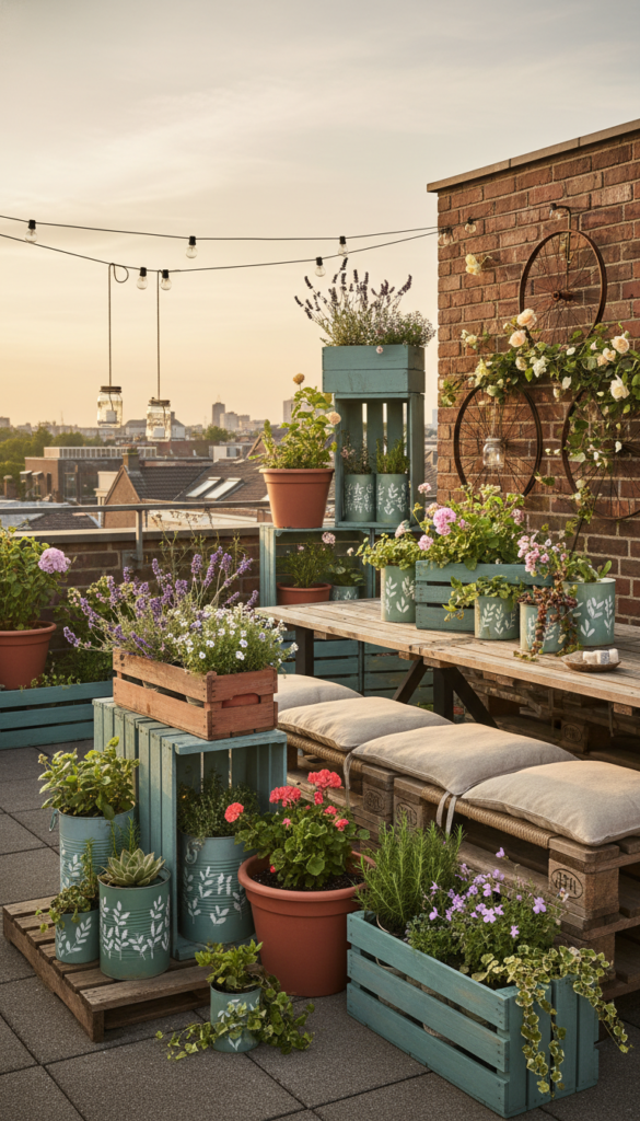 Repurposed planters add personality while reducing waste. Old buckets, crates, or metal cans transform easily with a little paint or creativity.