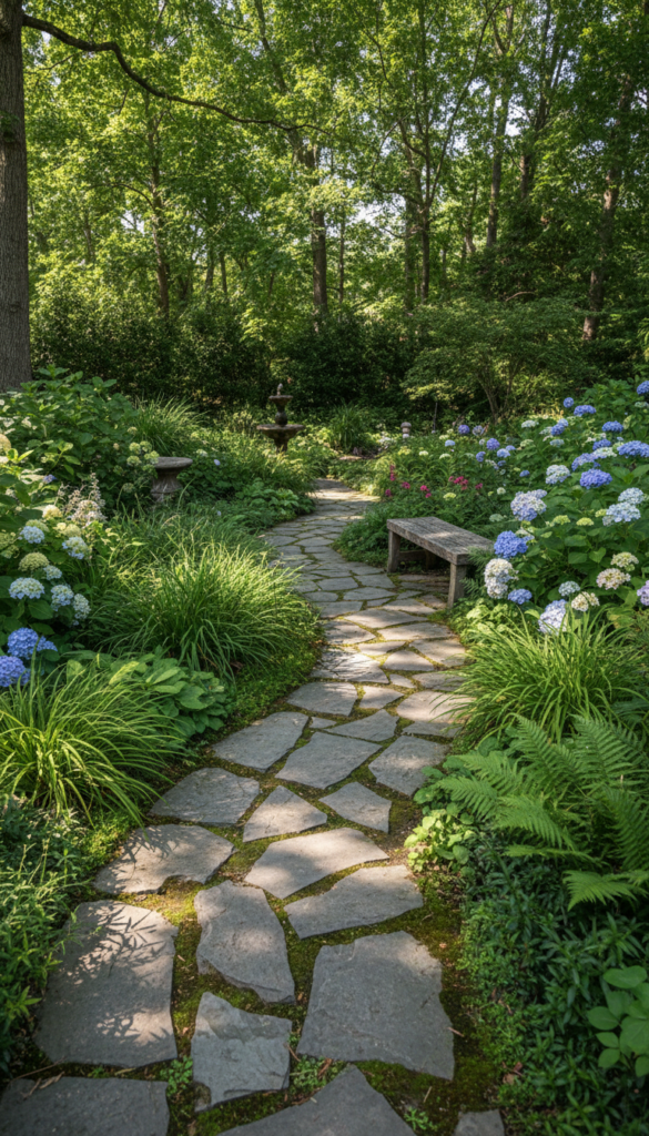 Use gravel, stepping stones, or brick to create gentle curves through planting beds. Let plants spill slightly over the edges for a softer look.