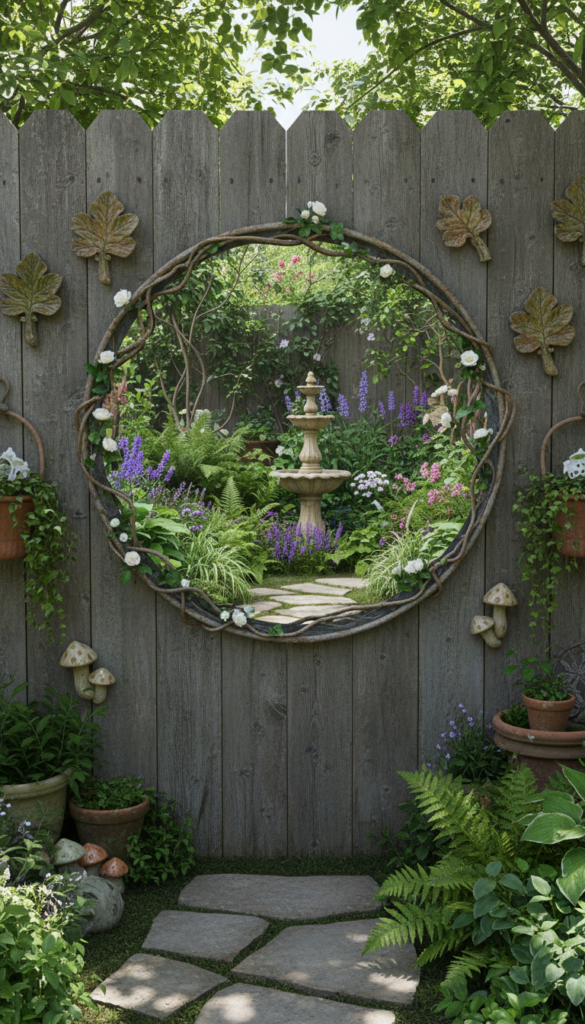 This idea works because it adds visual interest without clutter. It is a clever small garden decor trick that feels unexpected.