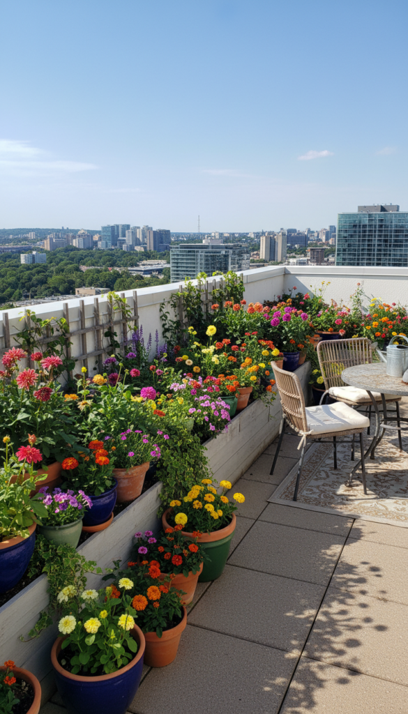 People love this because it feels vibrant yet simple. Backyard styling suddenly appears elevated even on tiny rooftops.