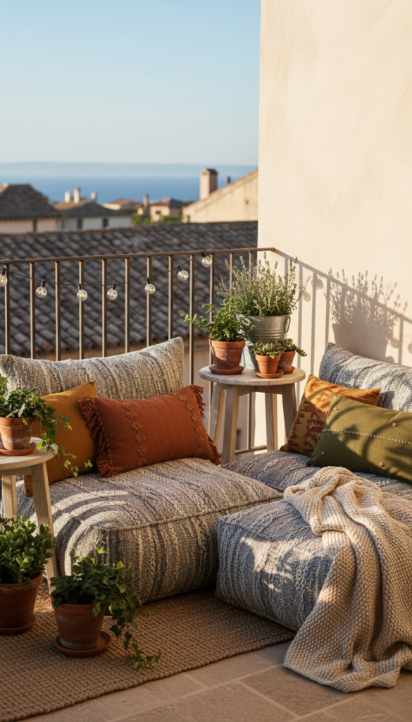 This setup turns your balcony into a little alfresco living room that feels way more expensive than it actually is.